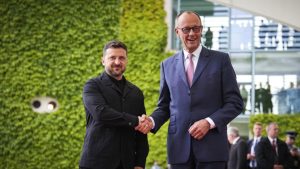Dok se to pitanje još rješava, ukrajinski predsjednik Zelenski krenuo je u srijedu 28. svibnja u službeni posjet Saveznoj Republici Njemačkoj. Dane pred njegov dolazak obilježilo je razmimoilaženje njemačkog političkog vrha po pitanju dozvole za neograničeno korištenje doniranog naoružanja (novi kancelar Friedrich Merz je govorio o ukidanju svih dosadašnjih ograničenja na „vatre dugog dometa“, dok ga je njegov vicekancelar i ministar financija Lars Klingbeil demantirao, tvrdeći da nema sporazuma koji bi po tim pitanjima išao dalje od stava prethodne njemačke vlade) – ipak je bilo jasno kako će njemačka podrška ukrajinskim ratnim naporima biti osnova razgovora.