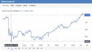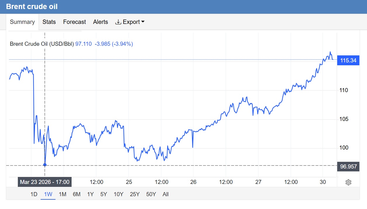 Kretanje cijena Brent nafte do ponedjeljka 30. ožujka rano ujutro