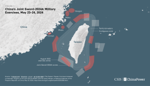 Kina se u strategiji tretira ne kao protivnik ili prijetnja, već kao potencijalni suparnik. To je urađeno sa davanjem naglaska ne na sukob vrijednosti (gdje je naglasak na sprječavanje jačanja kineskog autoritarizma kroz očuvanje međunarodnog poretka zasnovanog na pravilima i normama), već na suprotstavljanje različitih ekonomskih interesa obje strane. Cilj je ekonomski oslabiti Kinu tako da ne bude sposobna pokrenuti vojne akcije koje bi štetile interesima SAD (invazija Tajvana). Ovo je potpuni zaokret u odnosu na prijašnje američke strategije koje su od Tiān’ānména naglašavale potrebu demokratizacije Kine. Po pitanju Tajvana ističe se njegov ekonomski značaj (veliki proizvođač kompjuterskih čipova) te strateški značaj za kontrolu Južnokineskog mora (zauzimanjem Tajvana Kina dolazi do drugog otočnog lanca). Odvraćanje kineske invazije Tajvana treba se zasnivati na očuvanju vojne nadmoći nad Kinom, ali Washington očekuje da američki saveznici u regiji (Japan, Južna Koreja) podnesu najveći teret ulaganja u vojne sposobnosti.